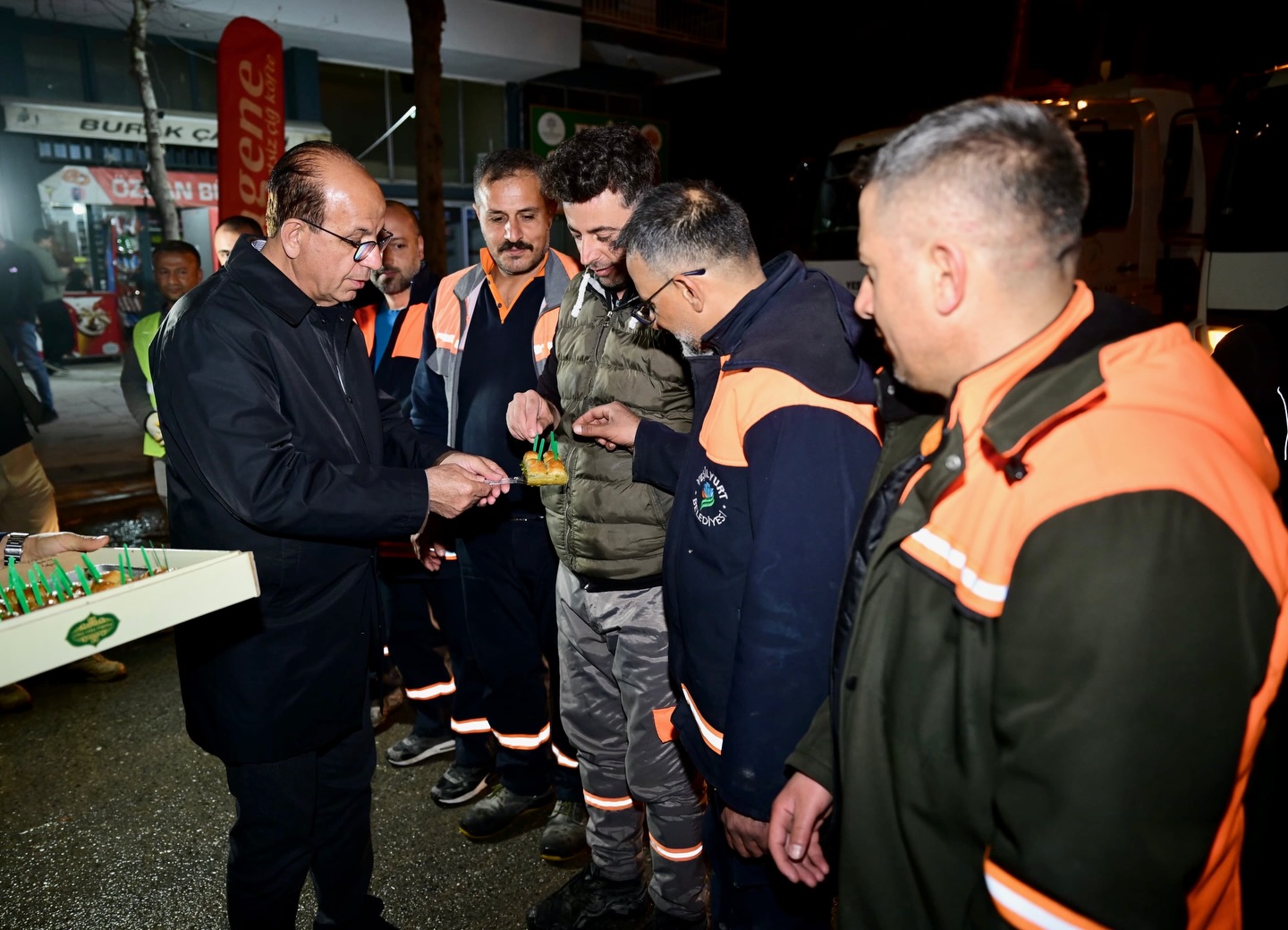 Temizlik personellerine emek ve gayretlerinden dolayı teşekkürlerini sunan Başkan Geçit, personellere tatlı ikramında bulunup, Ramazan Bayramlarını tebrik etti.